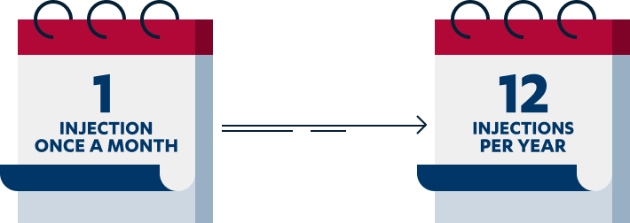 A single 50-mg dose administered subcutaneously once a month1